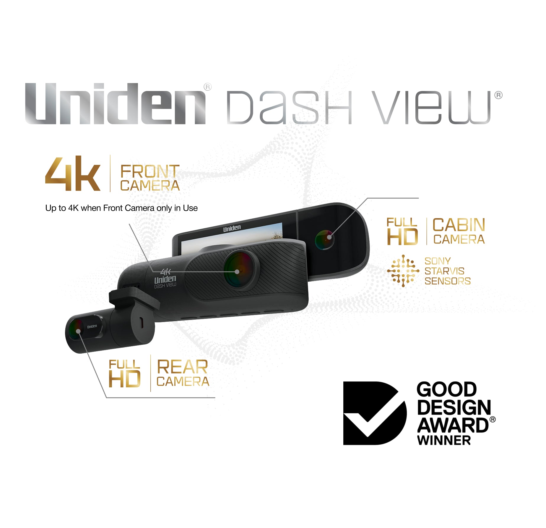3-In-1 Dash Camera - 4K Ultra HD Smart Dash Cam with FULL HD Rear View and Internal Cabin Camera, 2025 Good Design Australia Award Winner