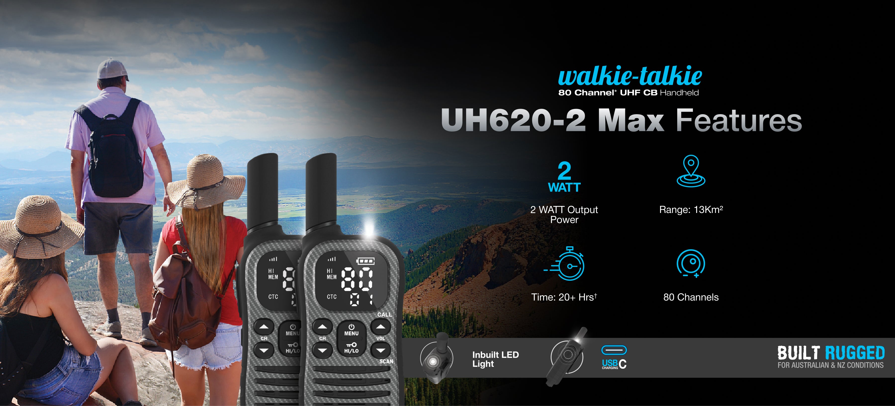 Whether you’re tackling rugged trails, camping under the stars, or keeping in touch around the campsite, the UH620-2 Max delivers the durability, clarity, and advanced features to keep you connected on every adventure.
